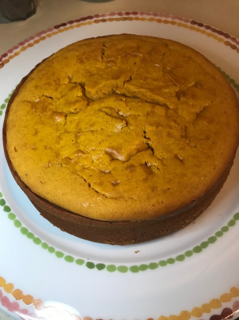 - Use a fork or skewer to poke holes all over the top of the turmeric cake