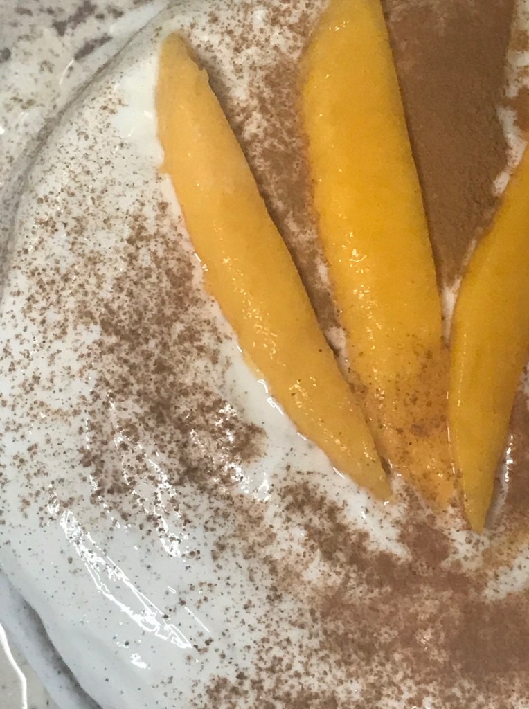 - Garnish with sliced mango or fruit of choice. Sprinkle with ground cinnamon if desired