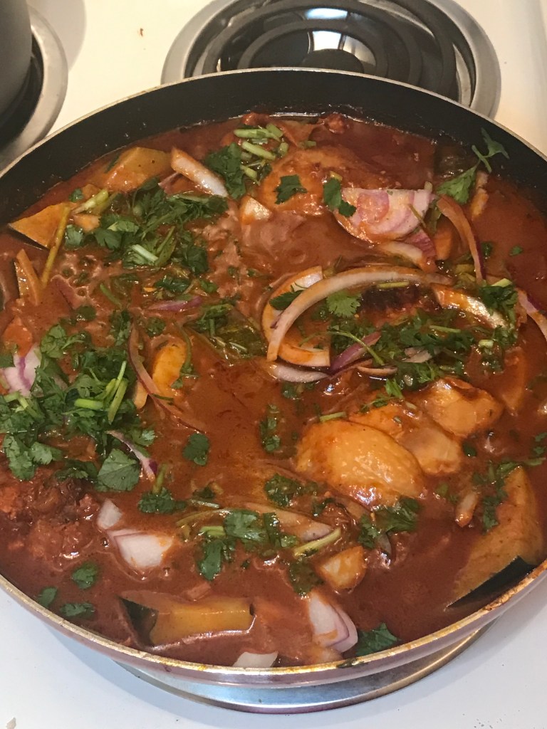 Curry is essentially a stew with a spice blend. Curry varies all over the world. This curry is inspired by the Indian diaspora. Some families have their own spice blend; however, pre-made curry powder is easily available in many West Indian stores. I personally use Lalah’s Madras Curry powder,